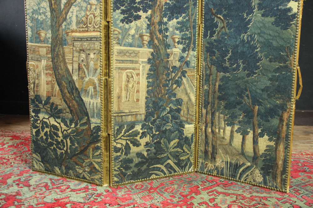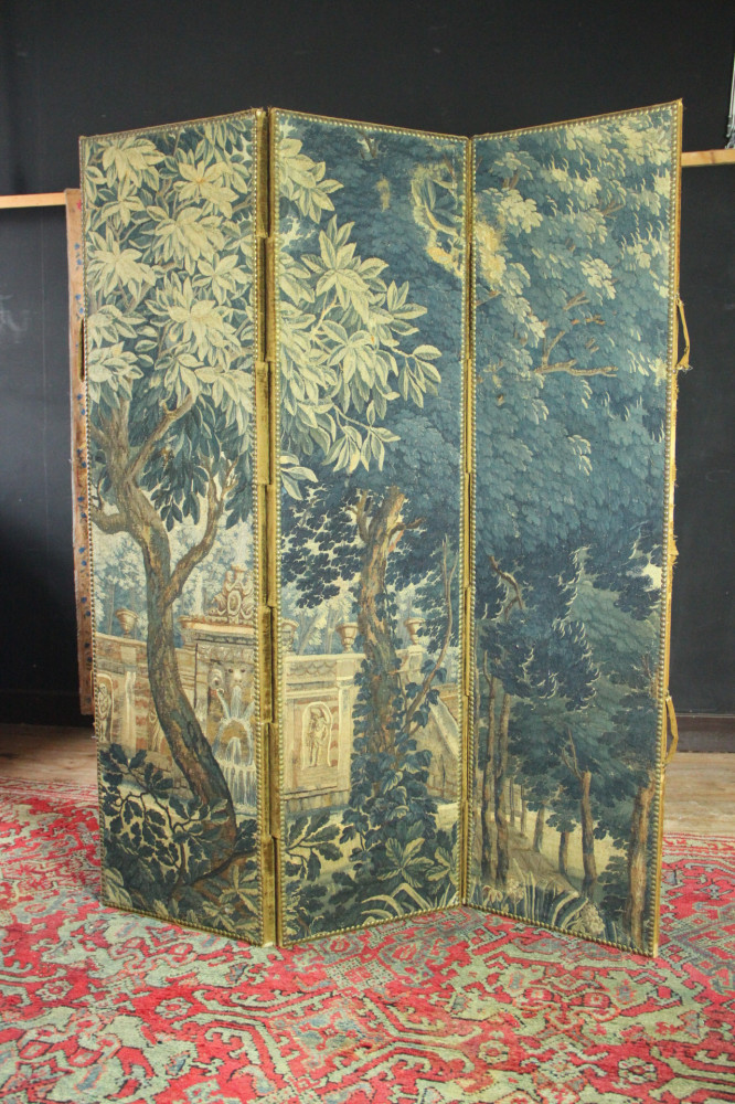 Screen Upholstered in Fine 17th Century Flemish Verdure Tapestry