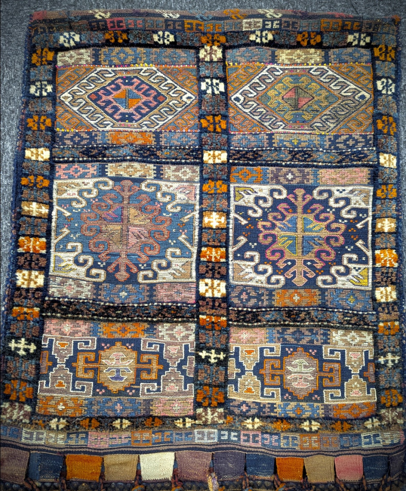 Lovely vintage double khorjin. Wool. Evidence of fuchsine dye, which is indicative of an antique age.