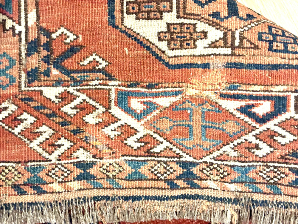 Condition: One or two repairs, corners and ends wearing - see photos. 4th photo shows back of carpet and a repair.