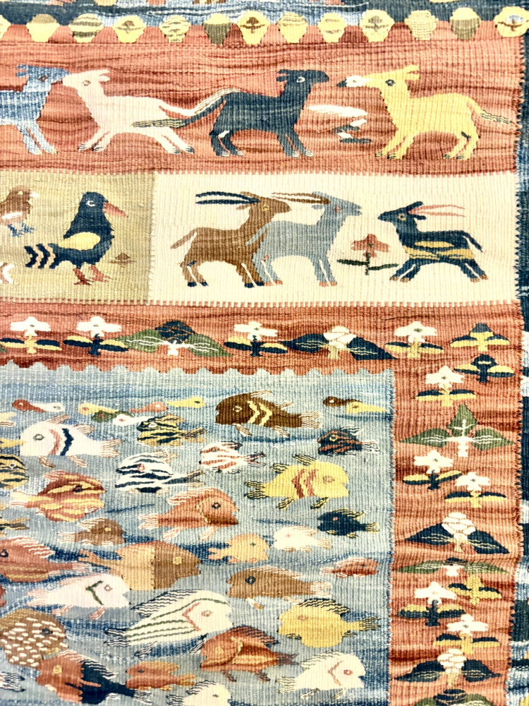 An exquisite miniature Tapestry from Wissa Wassef Art Centre, Egypt. Natural dyes.